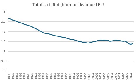 Det är inte endast Frankrike som brottas med demografiska problem. 2,1 barn per kvinna är den nivå som krävs för att en befolkning ska ersätta sig själv. Noll immigration och normal dödlighet är förutsatt. En sådan befolkning varken växer eller krymper. Frankrike är på intet vis unikt. EU-genomsnittet är för närvarande 1,38 barn per kvinna.
